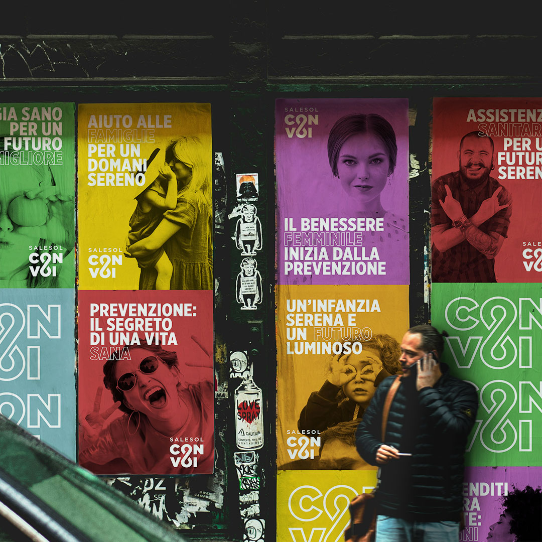 ConVoi is an initiative by Salute e Solidarietà, designed to encompass a variety of projects under a unified brand identity. The goal was to develop a visual identity versatile enough to span multiple fileds while maintaining a cohesive brand presence.